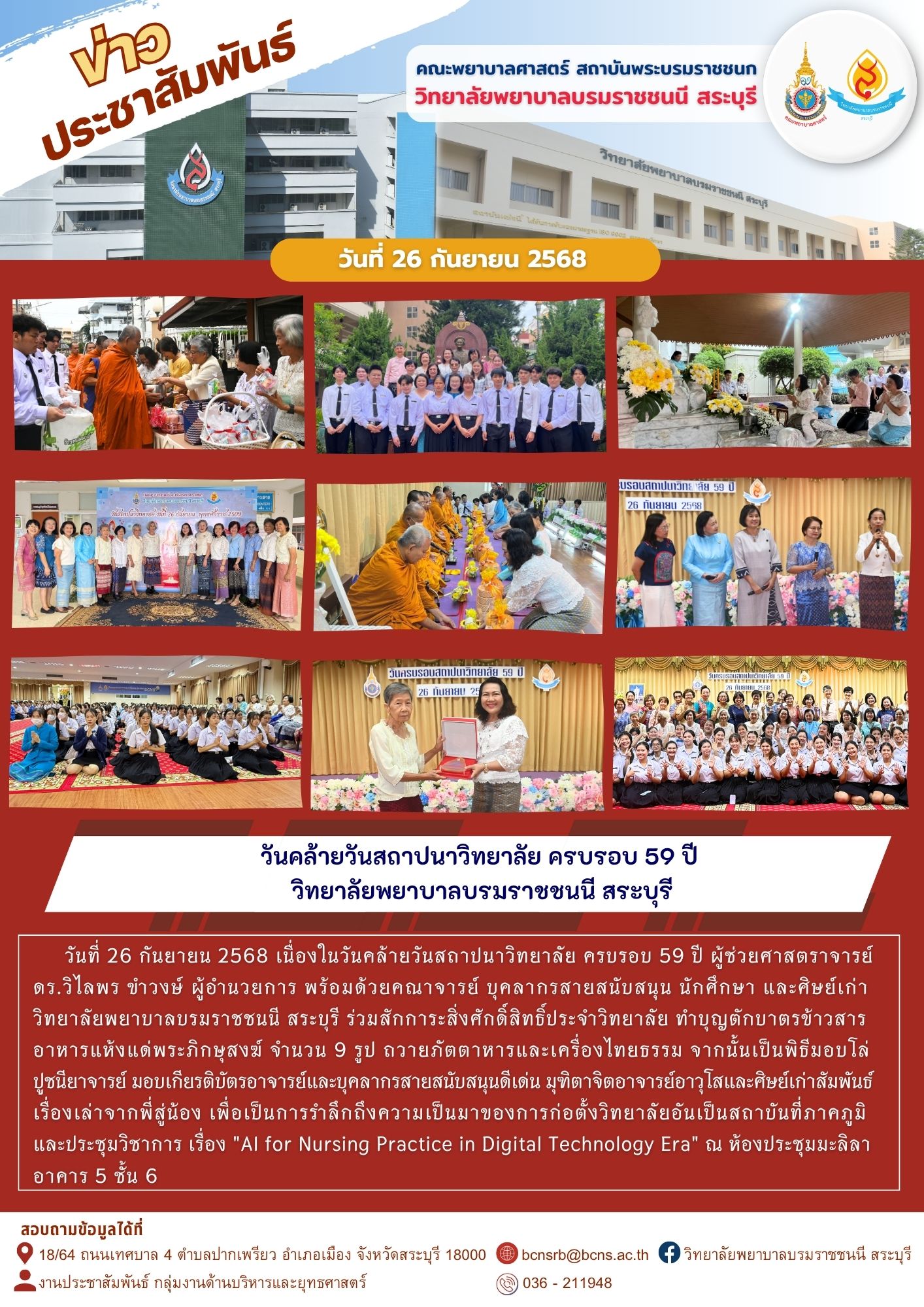14 Sep 2025 วพบ.สระบุรี เข้าร่วมโครงการแข่งขันทักษะทางวิชาการ คณะพยาบาลศาสตร์ สถาบันพระบรมราชชนก อ่านเพิ่มเติม