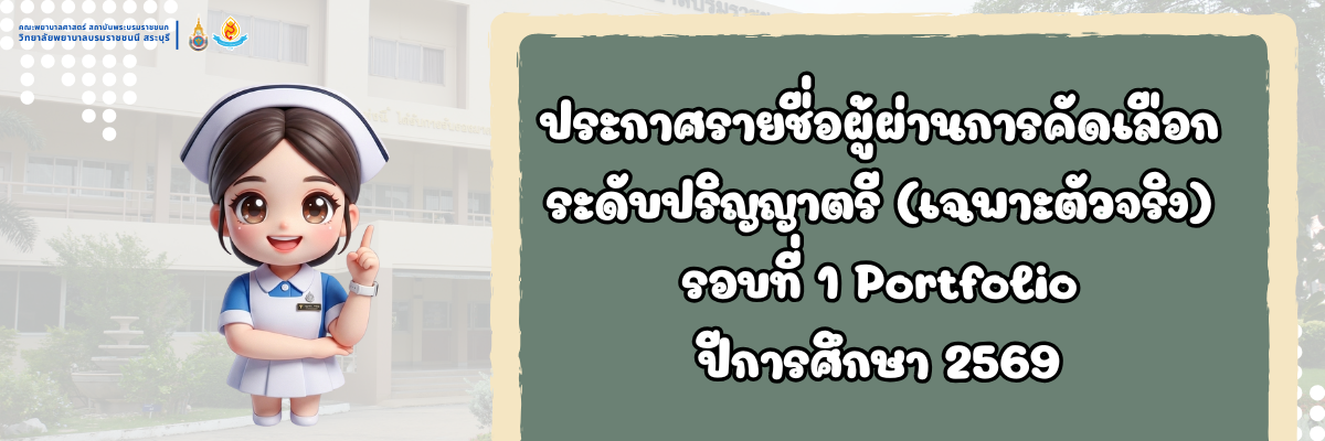 23 Dec 2025 ประกาศรายชื่อผู้ผ่านการคัดเลือก ระดับปริญญาตรี (เฉพาะตัวจริง) รอบที่ 1 Portfolio ปีการศึกษา 2569