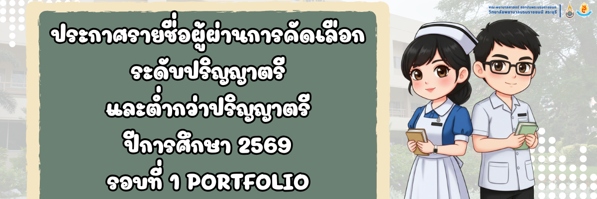 24 Nov 2025 ประกาศรายชื่อผู้ผ่านการคัดเลือก ระดับปริญญาตรี และต่ำกว่าปริญญาตรี ปีการศึกษา 2569 รอบที่ 1 PORTFOLIO