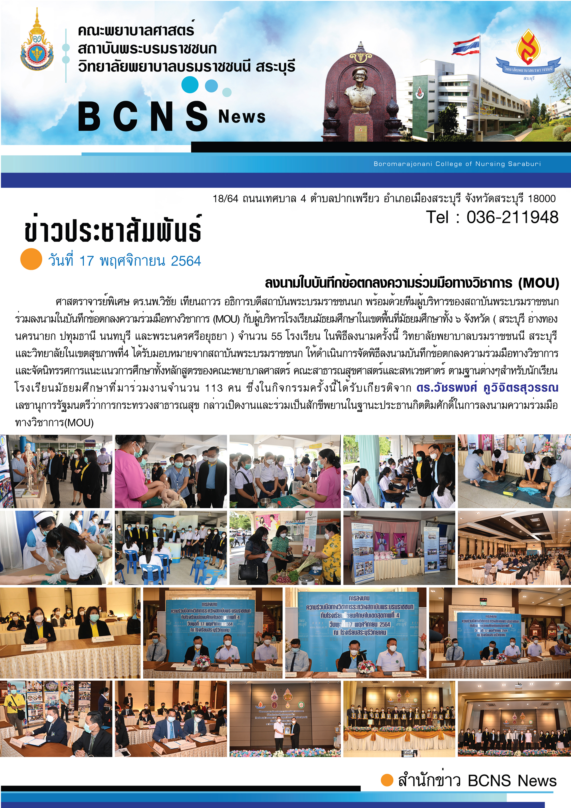 04 Jun 2024 วิทยาลัยพยาบาลบรมราชชนนี สระบุรี คณะพยาบาลศาสตร์ สถาบันพระบรมราชชนกได้รับการรับรองสถาบันการศึกษาวิชาการพยาบาลและการผดุงครรภ์ จากสภาการพยาบาล 5 ปีการศึกษา อ่านเพิ่มเติม