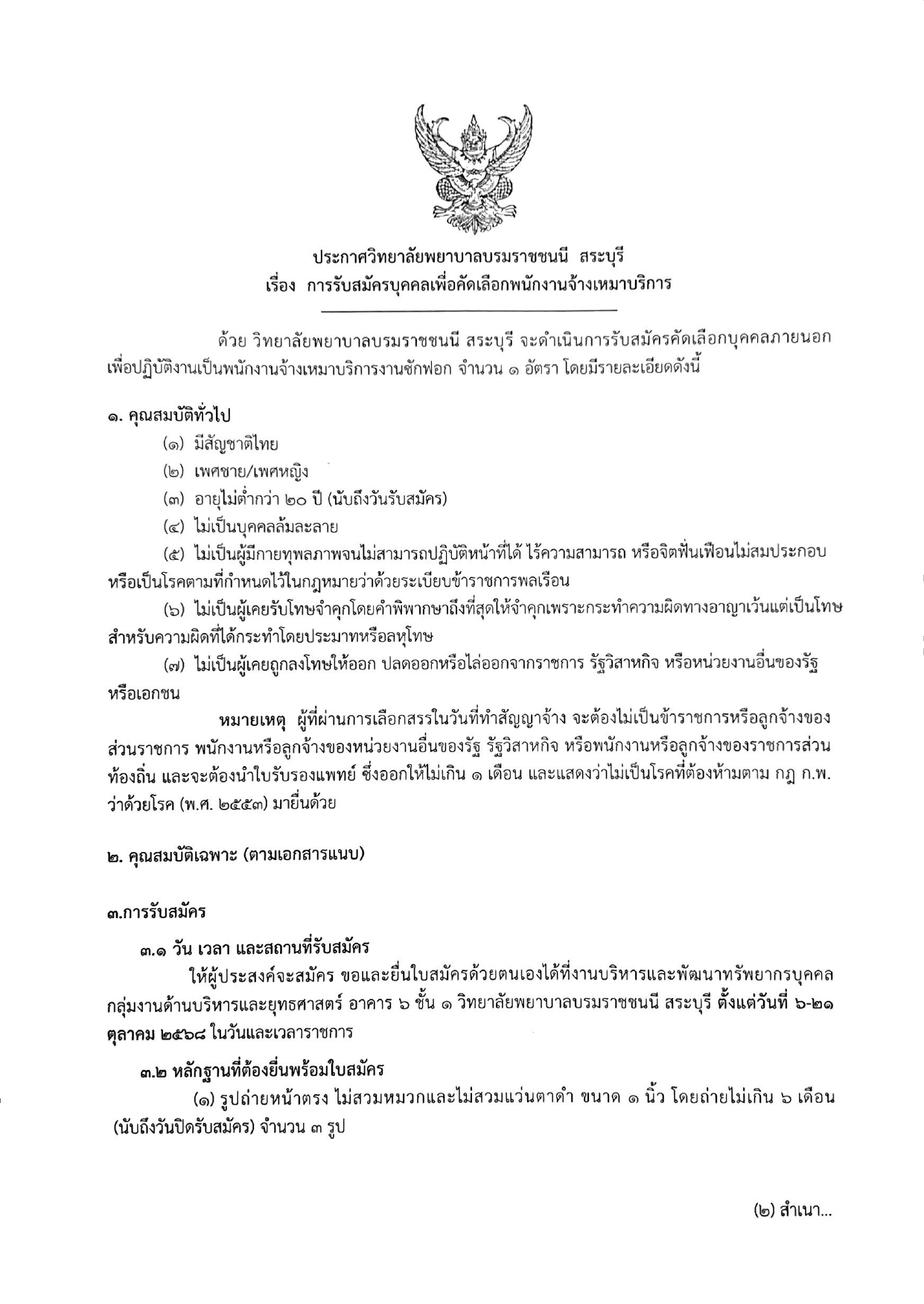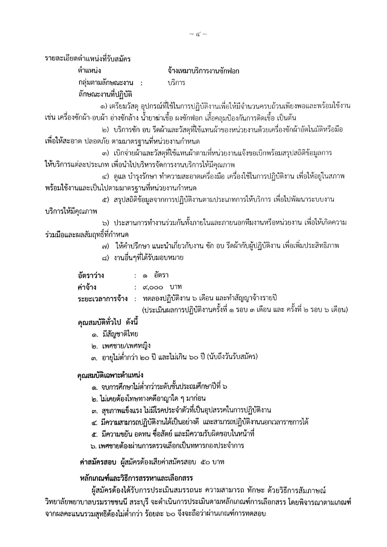 ประกาศรับสมัครพนักงานจ้างเหมาบริการ (งานซักฟอก)